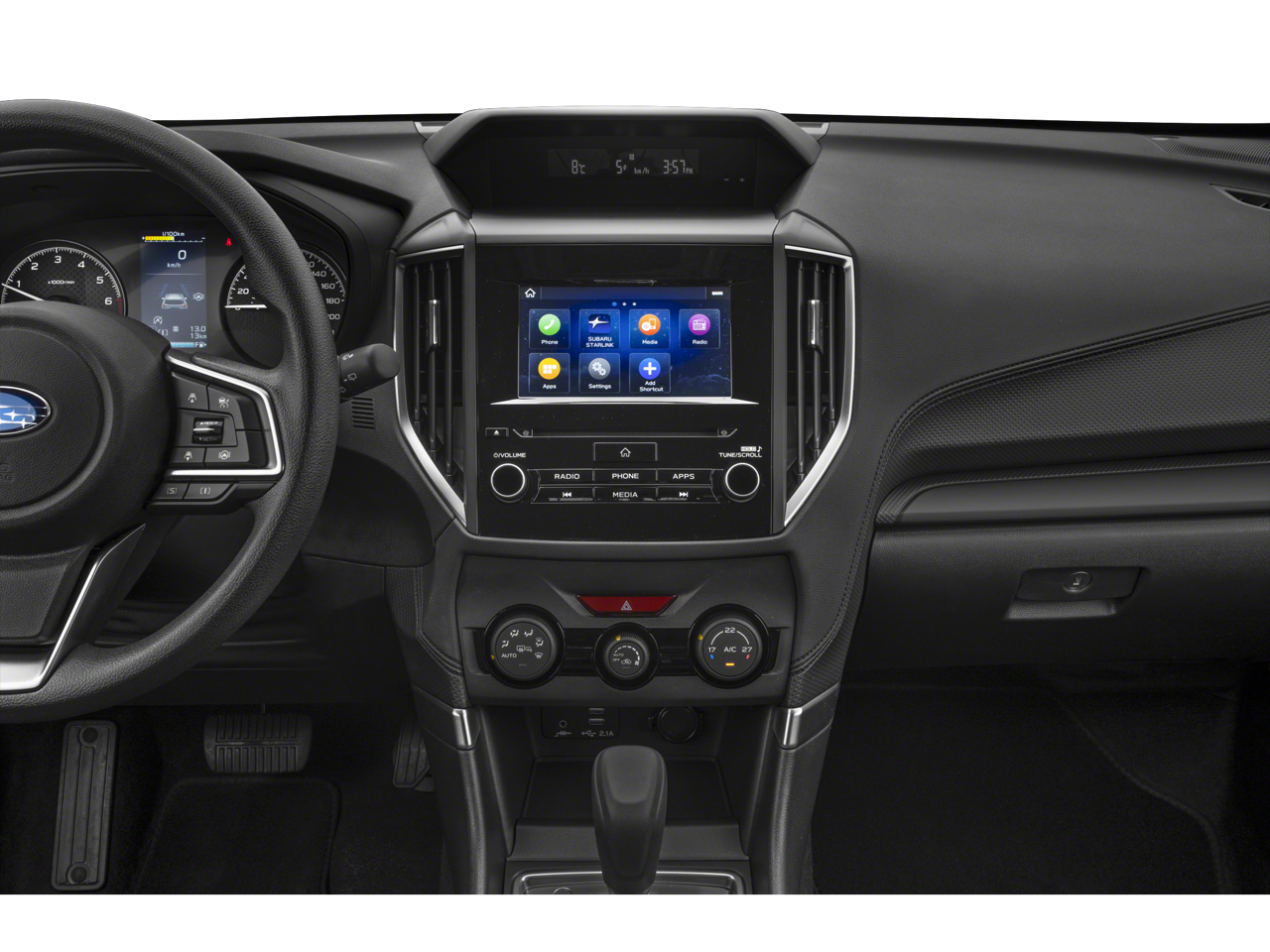 - Radio: Subaru Starlink 6.5" Multimedia Plus System -inc: AM/FM stereo HD Radio w/single-disc CD player, MP3/WMA/CRR/RW file capability, multi-touch gesture high resolution display screen, voice activated controls, Bluetooth® audio streaming, hands-free phone connectivity and hands-free SMS text messaging connectivity (refer to subaru.com for cell phone compatibility), iPod control capability, SiriusXM All Access radio and Travel Link (4 months free trial/subscription required after), smartphone integration for AHA, Android Auto, Apple CarPlay, Pandora and Starlink cloud applications (refer to subaru.com for app availability), USB audio system update, steering wheel controls for audio and Bluetooth®, 4 speakers, 3.5mm auxiliary input jack and dual USB A input/charge ports